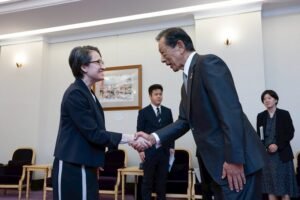 【記者 曹雅婷/臺北報導】蕭美琴副總統今(16)日上午接見「日本台灣交流協會會長隅修三乙行」,感謝日本台灣交流協會多年來持續扮演臺日交流與民間情感的重要橋樑。面對當前動盪的國際情勢,期盼該協會在隅修三會長帶領下,臺日兩國持續深化夥伴關係,為印太地區的和平、穩定與繁榮做出貢獻。