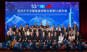 總統致詞時,首先代表中華民國臺灣政府及全國人民歡迎各國貴賓不遠千里來臺參加APPU第53屆年會。並提到,APPU的前身為「亞洲國會議員聯合會」(APU),由日本前首相岸信介在1965年倡議創辦成立,今年已邁入第60年,臺灣能主持此一歷史性年會,深感榮幸。同時感謝立法院韓國瑜院長、江啟臣副院長與朝野各黨派委員承擔此重責大任,以及APPU多年來讓各國國會議員透過這個平台,進行國會外交與交流合作,促進亞洲繁榮與進步。