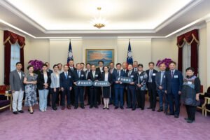 訪賓一行由台灣產業科技推動協會理事長涂醒哲率領,經濟部次長何晉滄陪同,前來總統府拜會副總統。