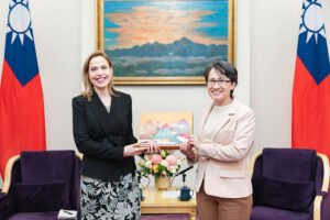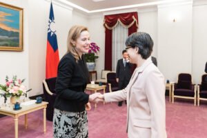 【記者 曹雅婷/臺北報導】蕭美琴副總統今(22)日上午接見「德國馬歇爾基金會」(GMF)跨大西洋訪問團,肯定GMF是提供跨大西洋與太平洋地區交流的重要平台。並表示,面對全球地緣政治情勢動盪,臺灣與其他民主國家都面臨許多挑戰,期盼透過此次交流與經驗分享,深化彼此合作,共同因應全球挑戰。