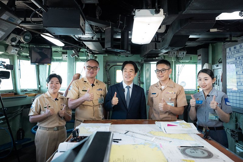 總統登艦後,先聽取官兵分享職務工作內容及慰勉執行演訓辛勞。並表示,偵巡前的完善規劃及預先準備的工作很重要,是確保任務順利、保障官兵安全的關鍵環節。同時提到,每一位在艦上的弟兄姊妹,都是守護臺灣第一線的關鍵角色;每一次出海、偵巡都是對國家安全的貢獻與守護,是海軍的光榮,更是國家的驕傲。對於海軍守護這片海域、保護臺灣民主與自由,也表達感謝。