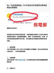 假普發現金釣魚網站 首波攻擊鎖定電子郵件用戶