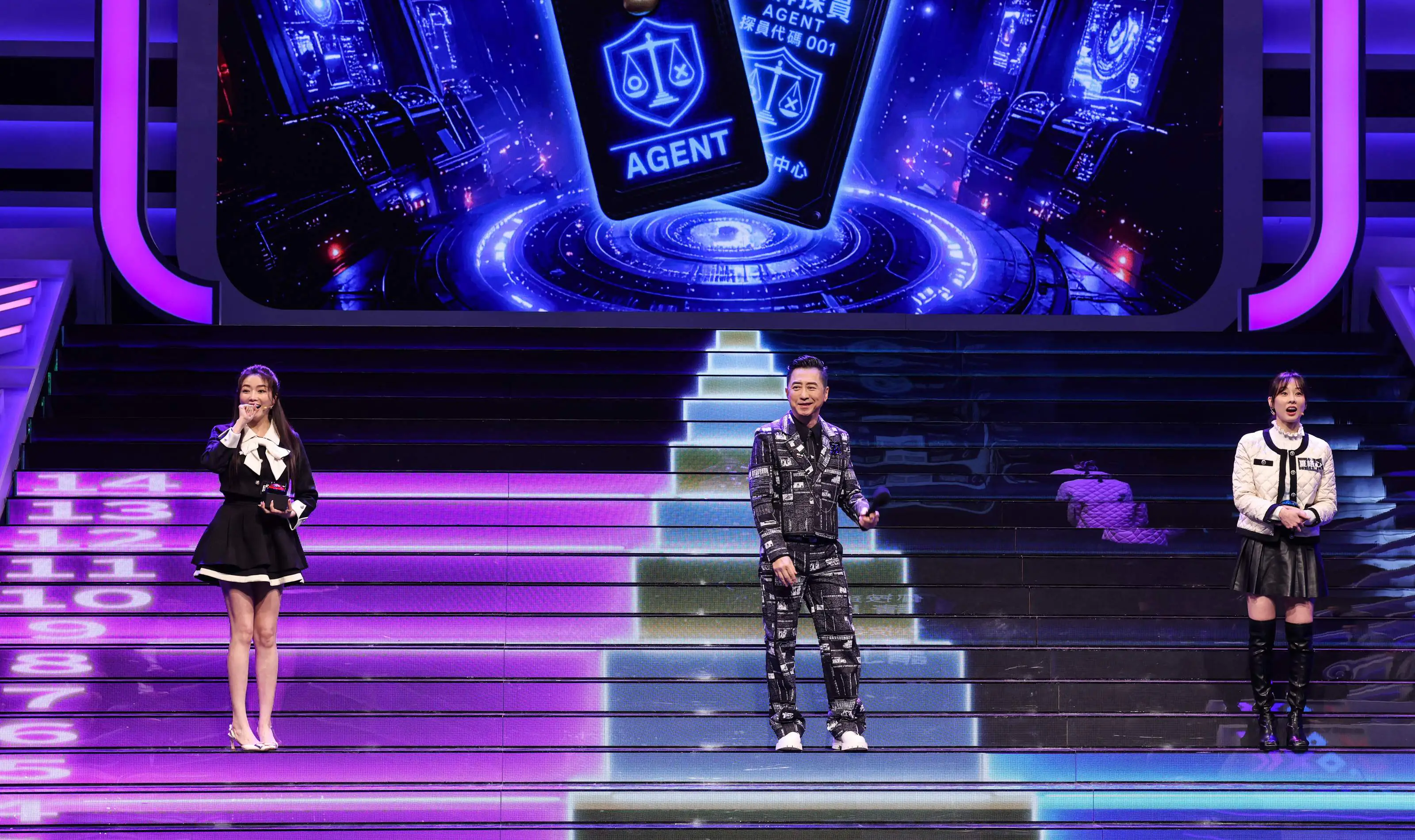 成語蕎(左)與夏語心(右)成功挺進最末關「真相凱旋門」(中為) 主持人哈林庾澄慶 照片提供:公共電視