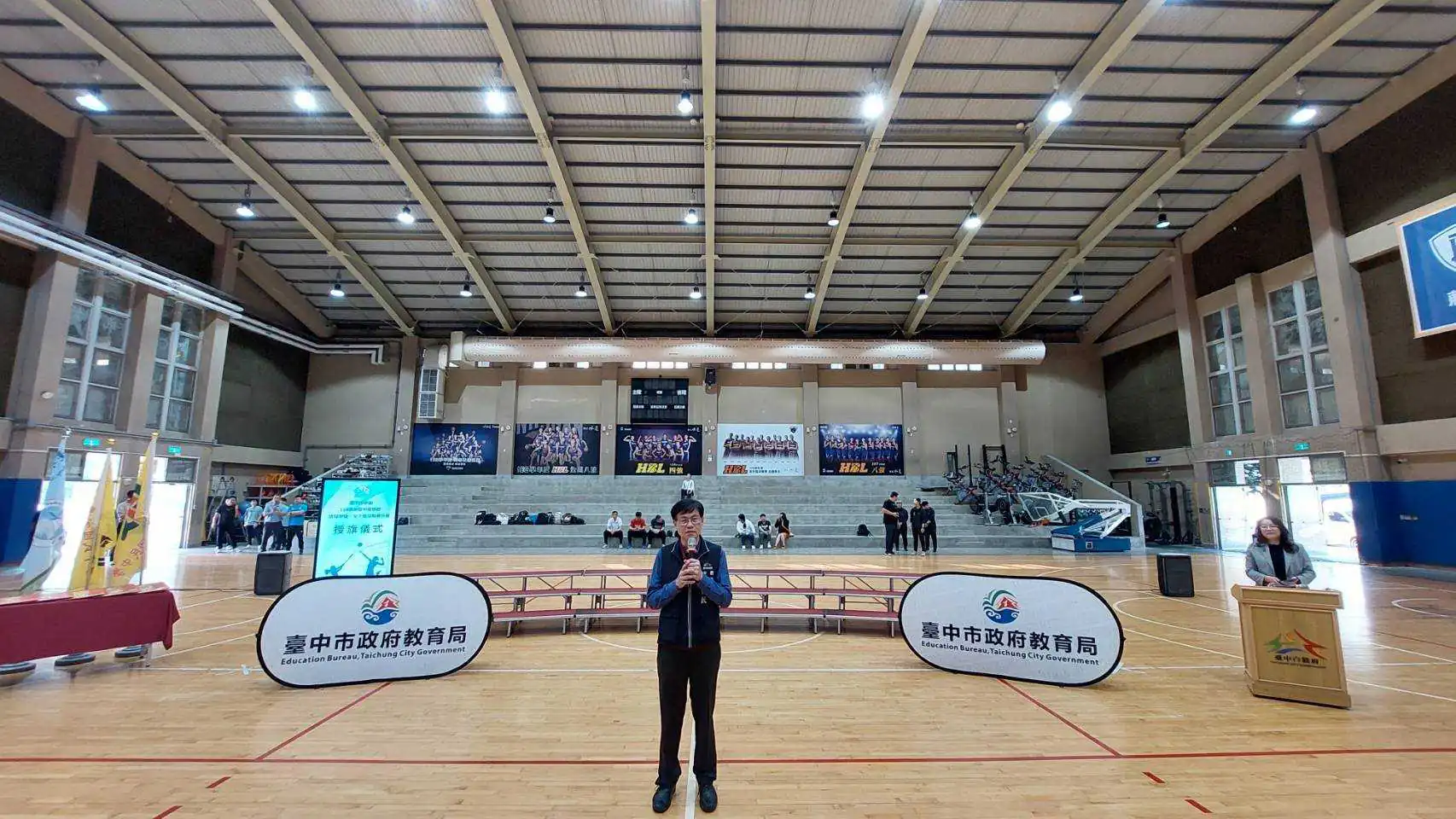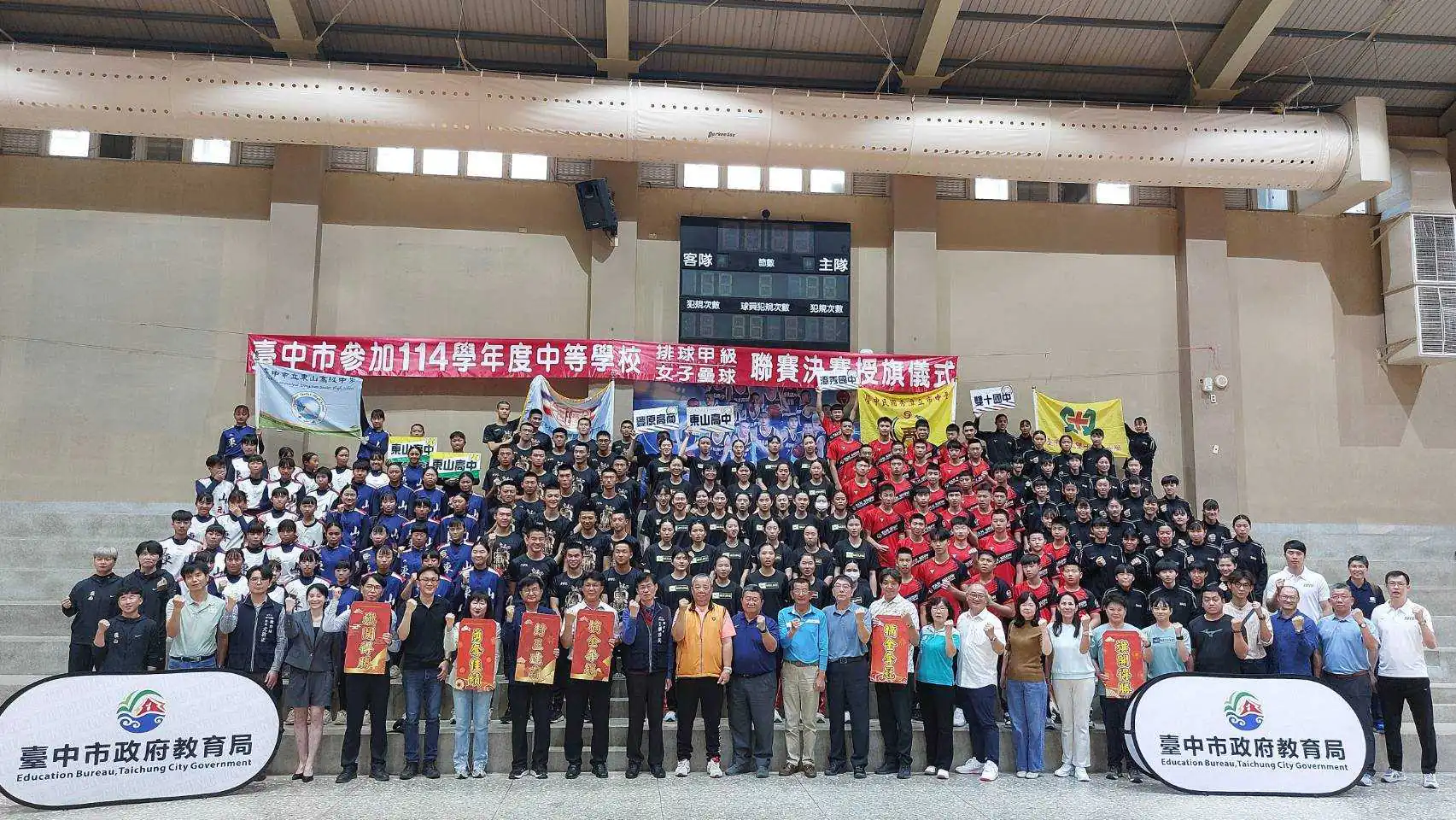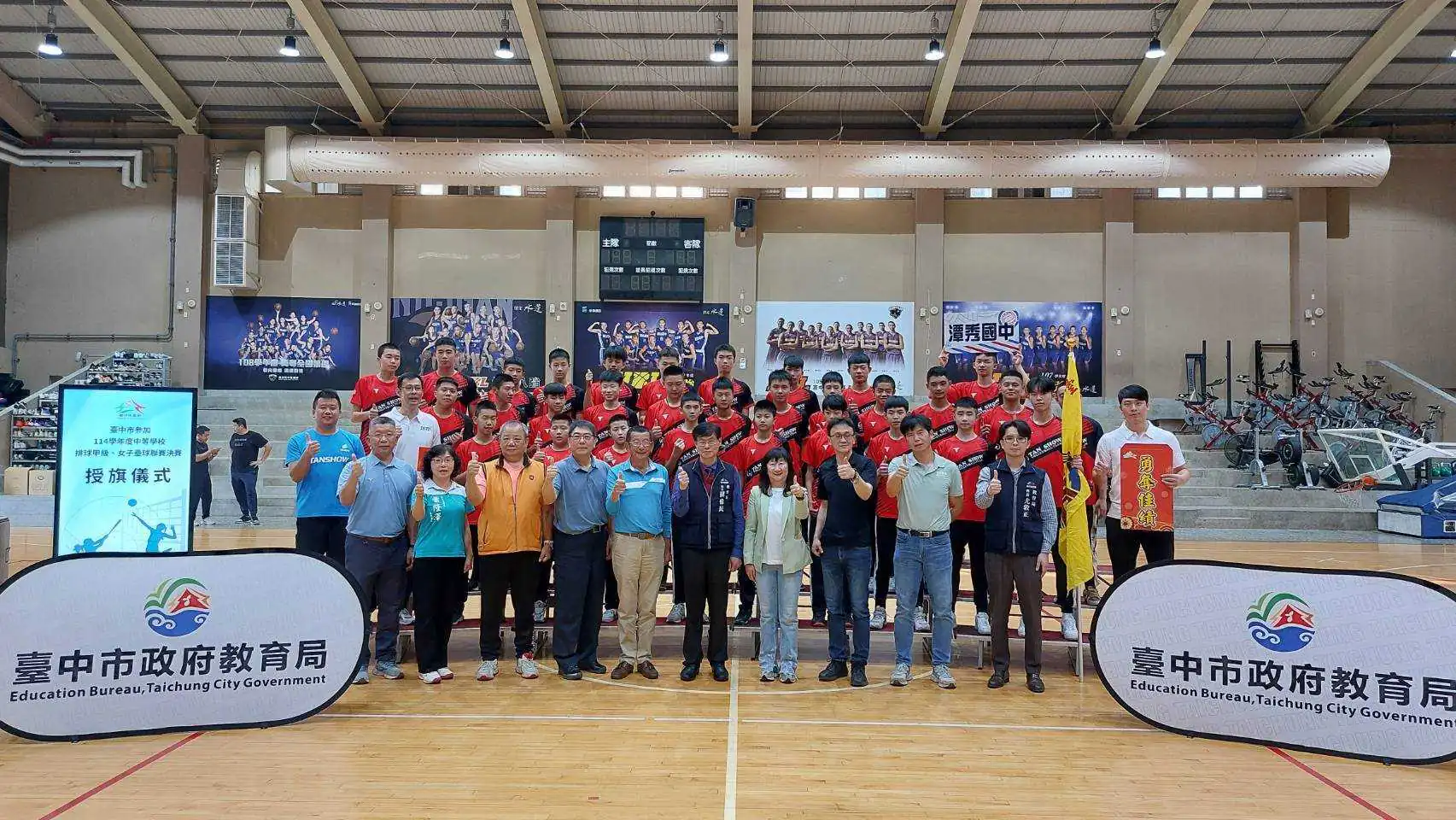 114學年度中等學校女子壘球聯賽(HSL)、中等學校排球甲級決賽(HVL、JHVL)將於3月接續開戰,台中市政府教育局長蔣偉民昨(2)日在「台中市籃球運動中心」為參加決賽的6隊選手們授旗,並代表市長盧秀燕致贈加菜金,為教練及選手們加油打氣,期許選手持續突破自己的極限,凱旋而歸。