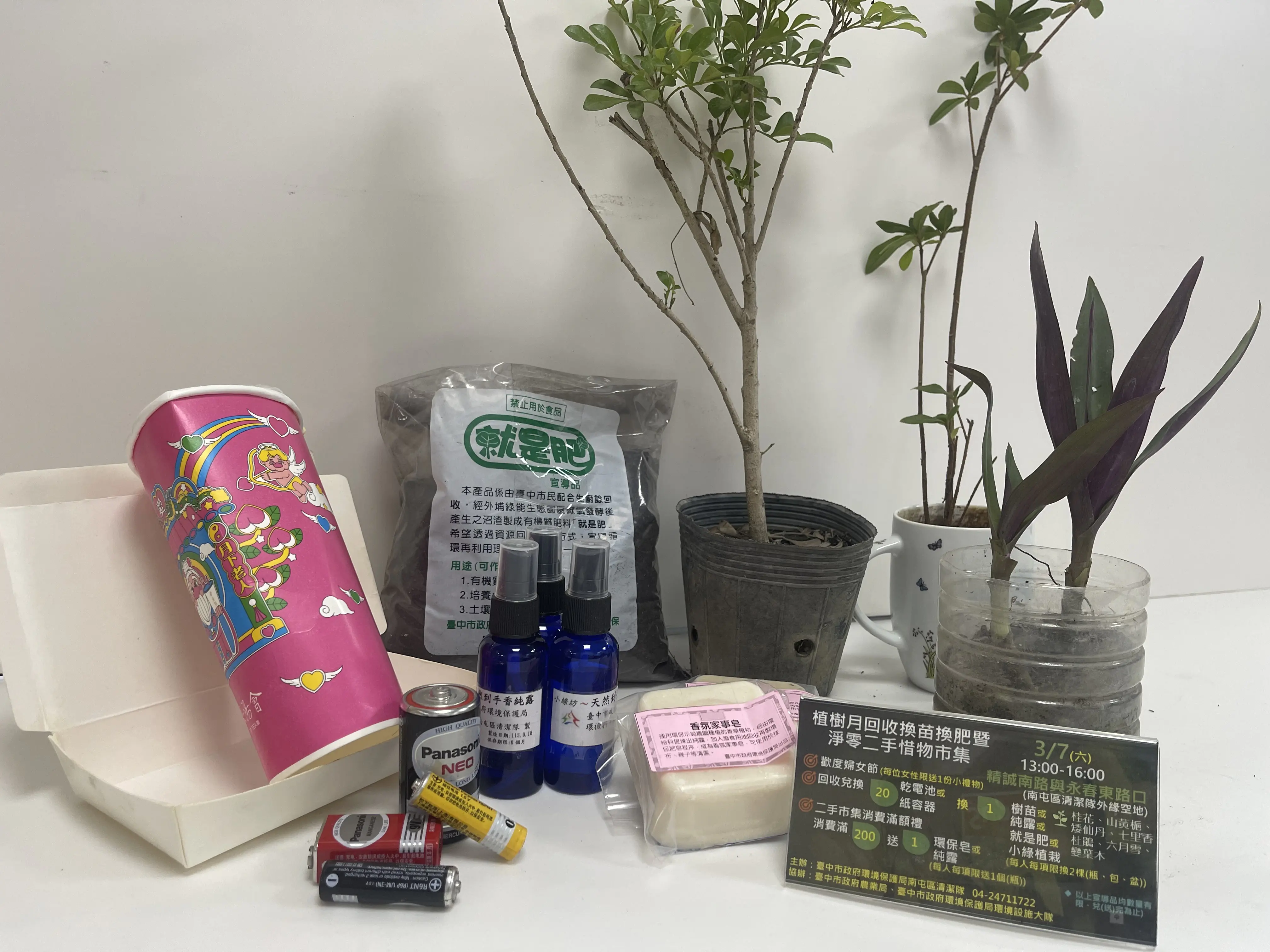 環保局表示,此次活動融合「回收兌換」與「惜物市集」兩大主軸,民眾只要攜帶20顆乾電池(不含鈕扣型電池)或20個紙容器,即可兌換樹苗、天然純露、有機資材「就是肥」或小綠植栽等環保宣導品,每人每項限兌換2份,數量有限,換完為止。活動所提供的樹苗由市府農業局提供,包括桂花、山黃梔、矮仙丹、七里香、杜鵑、六月雪及變葉木等共210棵,鼓勵民眾將綠意帶回家,透過實際種植行動提升城市綠覆率與碳吸存能力。