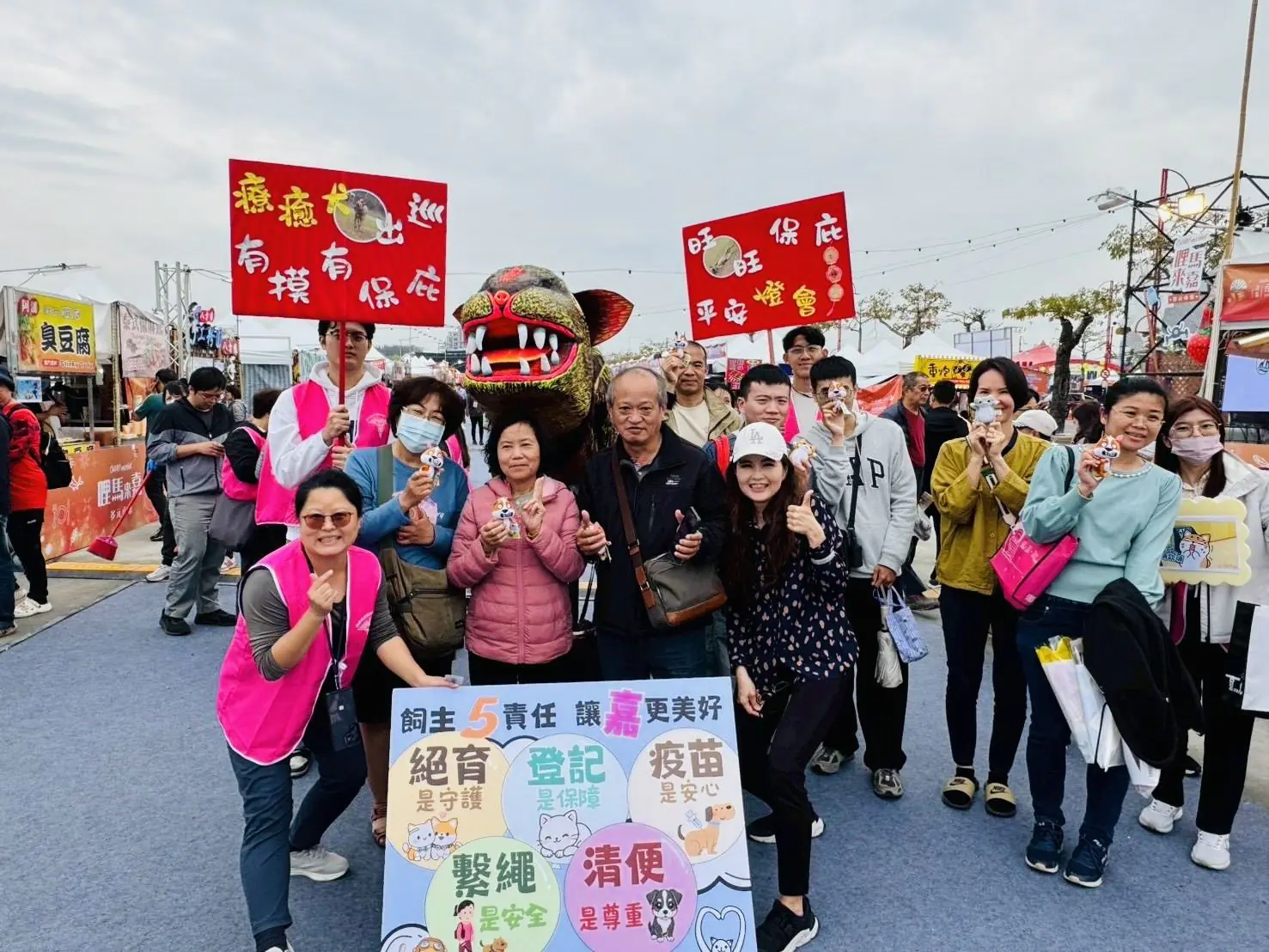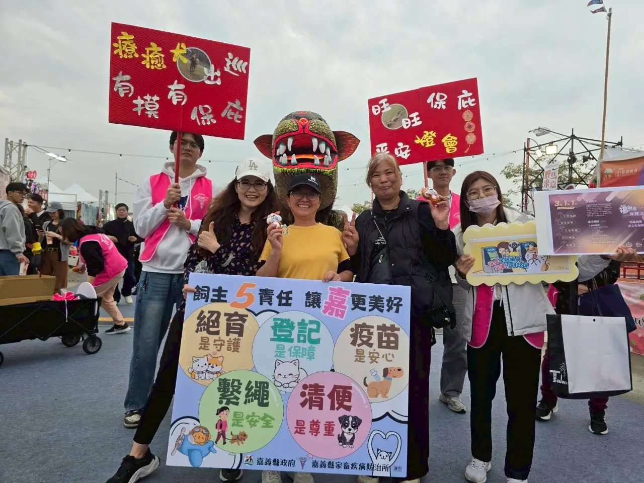 嘉畜所提醒民眾,在迎接毛孩進入家庭的同時,應給予牠們一生的照顧與守護,包括提供適當的食物與生活環境、必要的醫療照護、完成寵物登記與絕育、外出繫繩清狗便,以及最重要的不棄養、陪伴牠們走過一輩子,現場吸引眾多民眾甚至是攤商搶摸,在人潮匯聚的燈會節慶氛圍中傳遞一份關於「責任」與「陪伴」的溫暖訊息。