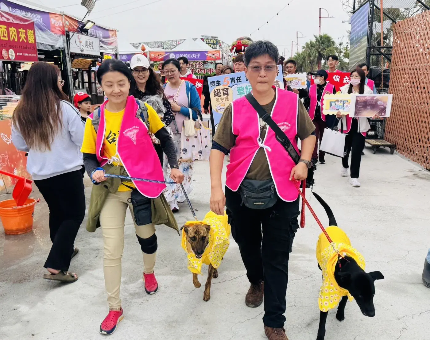 此外,這場溫馨的小遊行中,還有一位特別的「守護者」同行,是由三昧堂精心製作、來自鹿草圓山宮象徵守護犬隻與人類情誼的「獵狗公」寵物神,被視為全台少見的犬神信仰,許多民眾會輕摸神像狗頭,祈求家中毛孩健康平安、闔家順遂,陪伴著兩隻浪浪與宣導隊伍一同走在燈會會場,彷彿默默守護著所有動物與人之間的情感連結,也讓動物保護理念與在地信仰文化交織出別具意義的畫面。