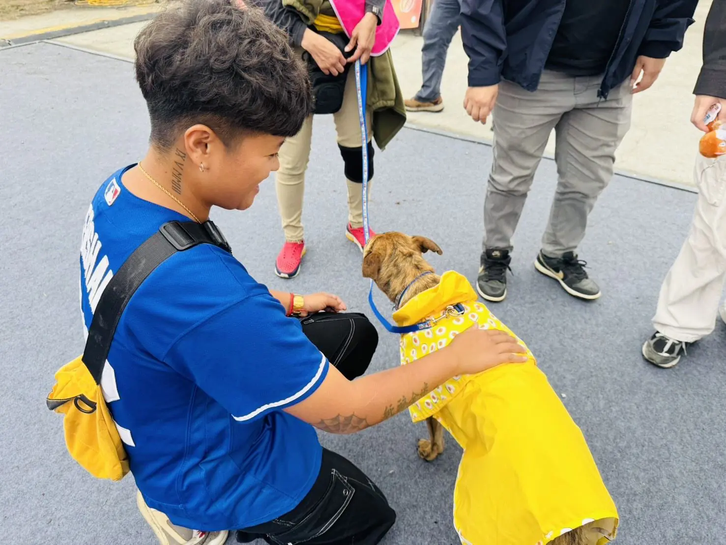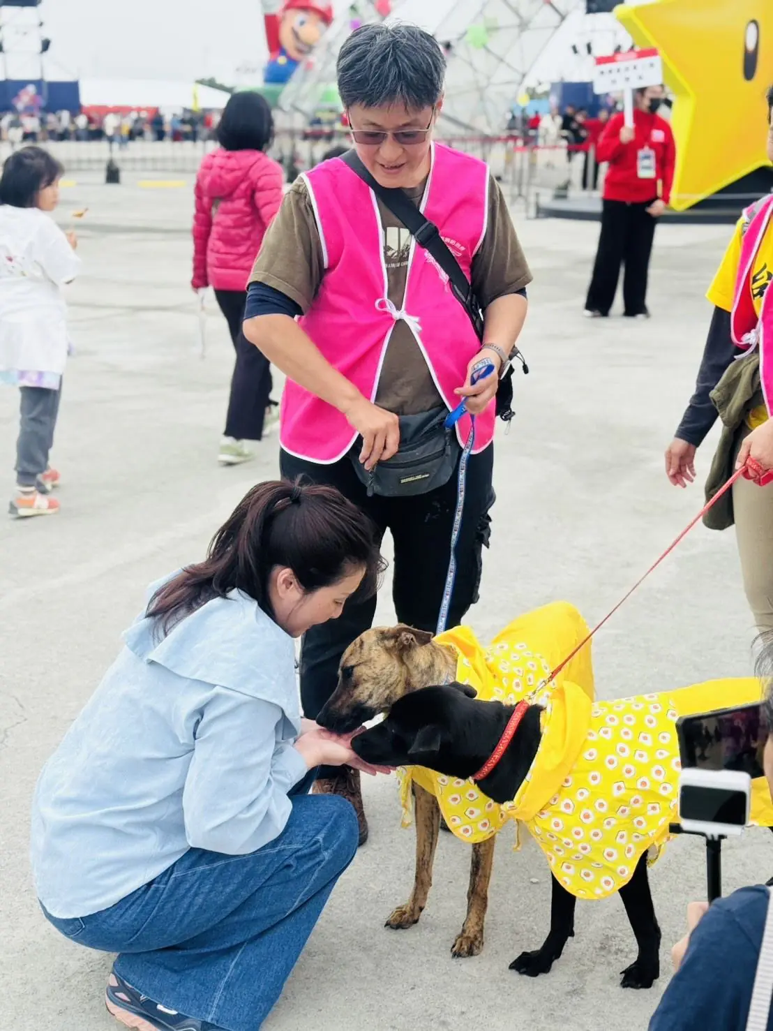 有些孩子原本只是好奇地靠近,沒多久便露出開心笑容,輕聲對小狗說話,現場充滿溫暖與歡樂的氣氛;有些飼主還會拿出手機與獵狗公及小狗們一起合影留念,象徵為家中寵物帶回一份守護與祝福。