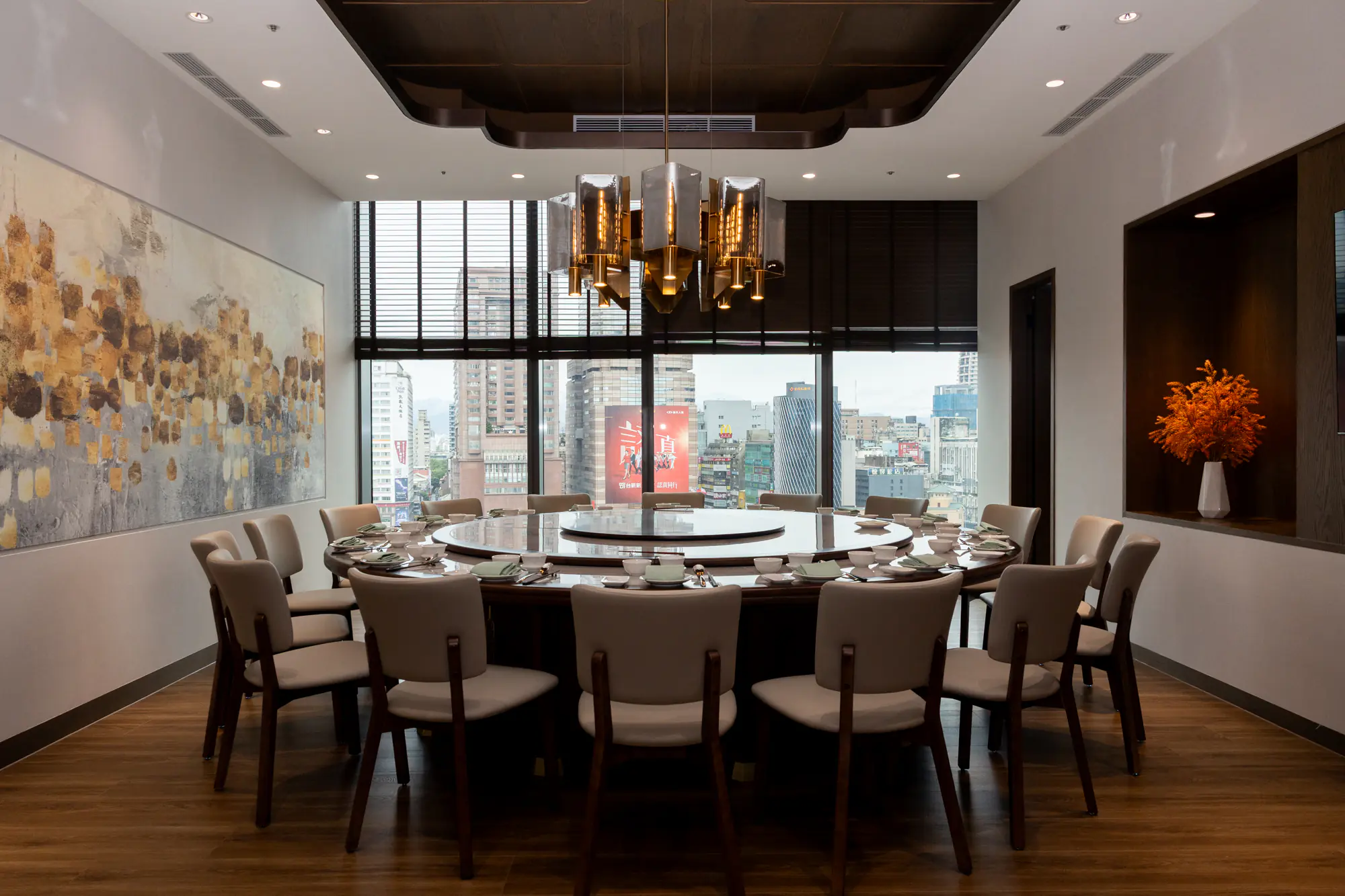 除獨立的包廂空間外,亦規劃雅緻寬敞的開放小吃區,視野開闊,可遠眺台北都會夜景。在輕鬆自在的氛圍中,賓客得以一邊欣賞城市燈火,一邊細品精緻中菜與茶酒搭配,讓傳統中餐跳脫既定印象,轉化為更貼近日常、卻依然講究質感的用餐體驗。