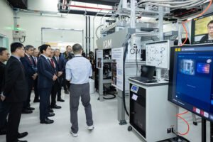 隨後,總統與貴賓一同進行量子國際隊啟航暨量子電腦次系統驗證平台啟用儀式,並參觀成果展示與量子實驗室,進一步了解我國量子相關研發製程與應用。