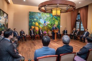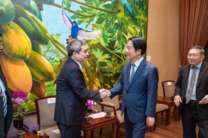 訪賓包括台灣生物產業發展協會理事長劉理成、榮譽理事長李鍾熙等,由衛福部長石崇良陪同,前來總統府晉見總統,總統府秘書長潘孟安也在座。