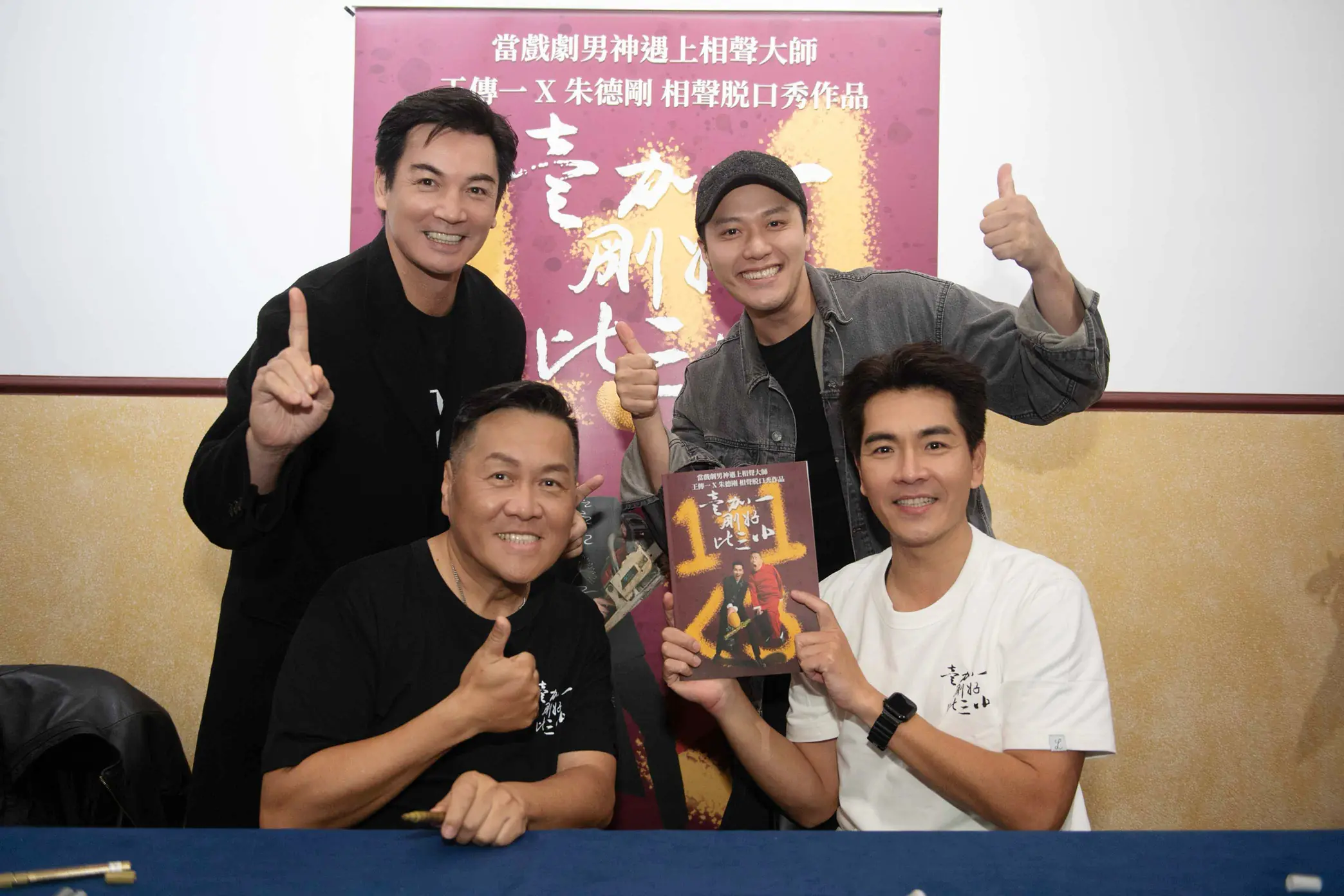 王傳一(前右)朱德剛(前左)移師台北場、演藝圈好友伊正(後左)張睿家(後右)現身支持 照片提供:嚞娛樂