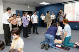 隨後,副總統視察防災士學員急救操作以及智能消防演練情形。