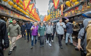 副總統接續前往「奠濟宮」參拜祈福,祈求國泰民安,風調雨順,並走訪廟口夜市,品嚐道地的炭燒蚵仔煎、鹹粥及泡泡冰等小吃,沿途與攤商及民眾親切互動、合影致意,展現對基層民生與地方經濟的關懷。