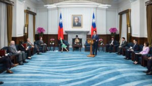 夏欣參議員致詞表示,訪團成員分別來自外交委員會、財政委員會及軍事委員會等,係美國參議院跨黨派訪問團,很高興「美國在台協會」(AIT)台北辦事處處長谷立言(Raymond Greene)也共同出席與賴總統會面。並強調,此行旨在重申美國國會對臺灣堅定且長久的承諾,這項承諾奠基於《臺灣關係法》與數十年來對臺海和平穩定的支持,維持區域穩定是雙方共同努力的目標。