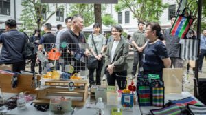 隨後,副總統於總統府南苑及北苑參觀由60年以上臺灣老店及臺灣餅業者共同設置的「春日樂淘淘」親子市集攤位,現場有各式復古及可愛小物,還有米菓等多種臺灣糕點美食,氣氛熱絡愉快。
