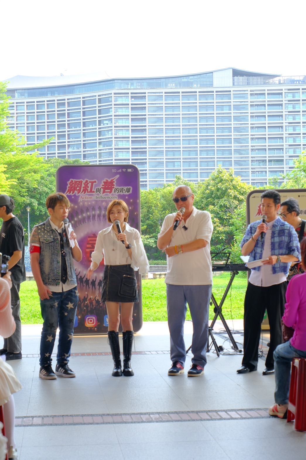 網紅見面會由台一線的阿玟及東諺擔任主持人,他們一開場開玩笑的說,他們不是只有主持節目跟帶流程而已,最主要是要看著網紅、壓著網紅,不准她們在節目現場搞怪或者落跑。然後又正經的說,我們主持人是要陪伴大家一起面對弱勢族群,傳播愛心,導演非常兇,大家都見識到了,所以我們倆位歐巴是非常溫柔的,請大家放心。