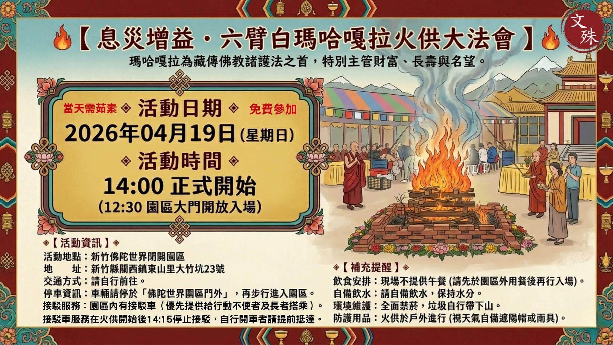 而4月19日這一天,新竹佛陀世界升起的,不只是熊熊烈焰,也是2026年台灣弘法行程的第一道光。