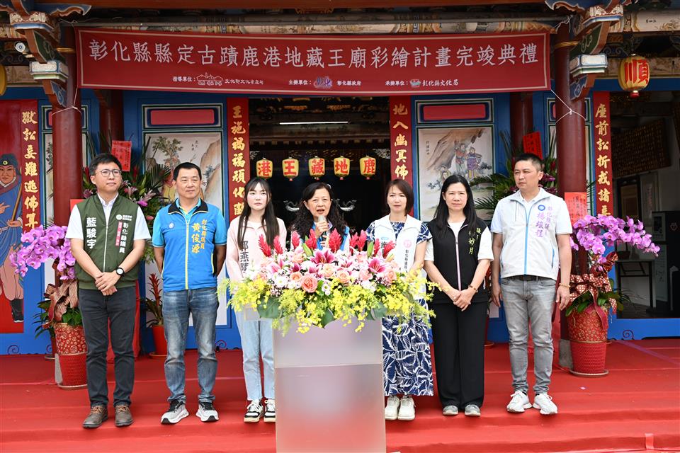 為保存珍貴文化資產並彰顯傳統工藝之美,彰化縣政府於今(28)日上午在鹿港地藏王廟舉辦彩繪計畫完竣典禮,彰化縣長王惠美、鹿港地藏王廟主委許森樹與各級民代等人與會。共同見證古廟歷經歲月淬鍊,再現風華的嶄新面貌。王縣長表示,縣定古蹟地藏王廟創始於清朝嘉慶20年(1815年),當年由鹿港八郊重建天后宮的餘資撥建而成,形成鹿港「北天后、南地藏」的獨特信仰格局,象徵一司天、一司地守護聚落,承載兩百多年來移民拓墾與民間信仰的歷史軌跡,於民國74 年公告為縣定古蹟,是珍貴的人文瑰寶。112年由文化部文資局核定總經費1,195萬元,其中由中央補助70%,縣府自籌25%,廟方自備 5%,公私協力共同守護文資。