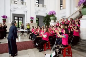副總統談到,合唱團的團員們在人生道路上都曾經歷一些挑戰,政府對此相當重視,也一直致力於完善無障礙空間及各項設施,期盼讓每位身心障礙者都能參與公共事務、發揮潛力,在社會各領域貢獻心力。