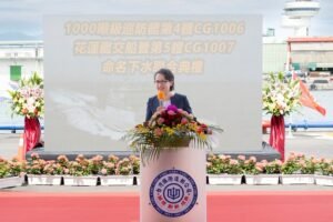 蕭美琴副總統今(8)日上午前往基隆出席海巡署「1000噸級巡防艦第4艘CG1006花蓮艦交船暨第5艘CG1007命名下水聯合典禮」