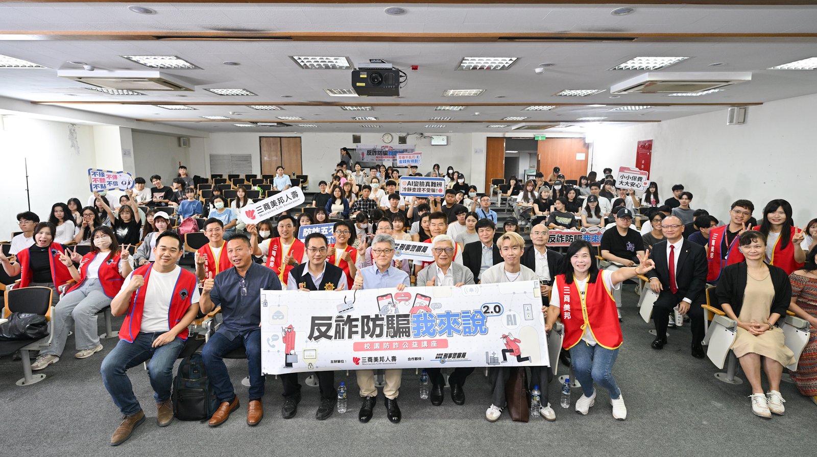 「2025校園防詐公益講座」首場講座特別邀請刑事警察局偵查員魏培倫、理財達人 SHINLI 李勛及資深媒體人戴志揚,分別從犯罪宣導、理財觀念與受害故事三大面向,帶領學生全面提升防詐意識。現場除解析最新詐騙手法與案例,並針對 AI 科技興起所衍生的新型詐騙進行剖析,最後透過有獎徵答強化記憶,獲得師生熱烈迴響。