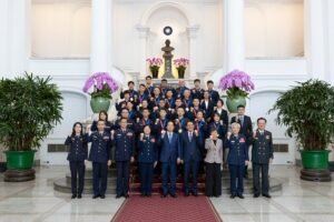 代表團一行由團長暨內政部警政署副署長廖美鈴率領,內政部長劉世芳、警政署署長張榮興及消防署署長蕭煥章陪同,前來總統府晉見總統,總統府秘書長潘孟安也在座。