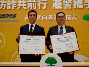 【記者 曹雅婷/臺北報導】為加強防制日益猖獗的投資詐騙案件,警政署刑事警察局今(3)日與國泰世紀產物保險股份有限公司正式簽署「反詐騙合作意向書」,由刑事局副局長陳世煌與國泰產險總經理陳萬祥代表雙方簽署。此舉展現產官攜手合作、共同打擊詐騙犯罪的決心,雙方將在「情資共享」、「防詐宣導」及「異常通報」三大方向建立跨領域合作機制,守護民眾財產安全。