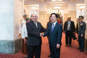 【記者 曹雅婷/臺北報導】賴清德總統今(18)日午間在總統府以國宴宴請吐瓦魯國總理戴斐立(Feleti Teo)伉儷,感謝吐瓦魯多次在國際場合表達對臺灣的支持。並指出,雙方近年合作成果豐碩,簽署多項重要文件,為兩國邦誼奠定堅實基礎,期盼持續攜手合作,促進民主、和平與繁榮。