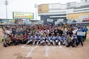 隨後,副總統與現場貴賓共同見證U16女棒成軍,並親頒2025台灣女子棒球聯賽冠軍獎盃予「開曼英利女子棒球隊」。