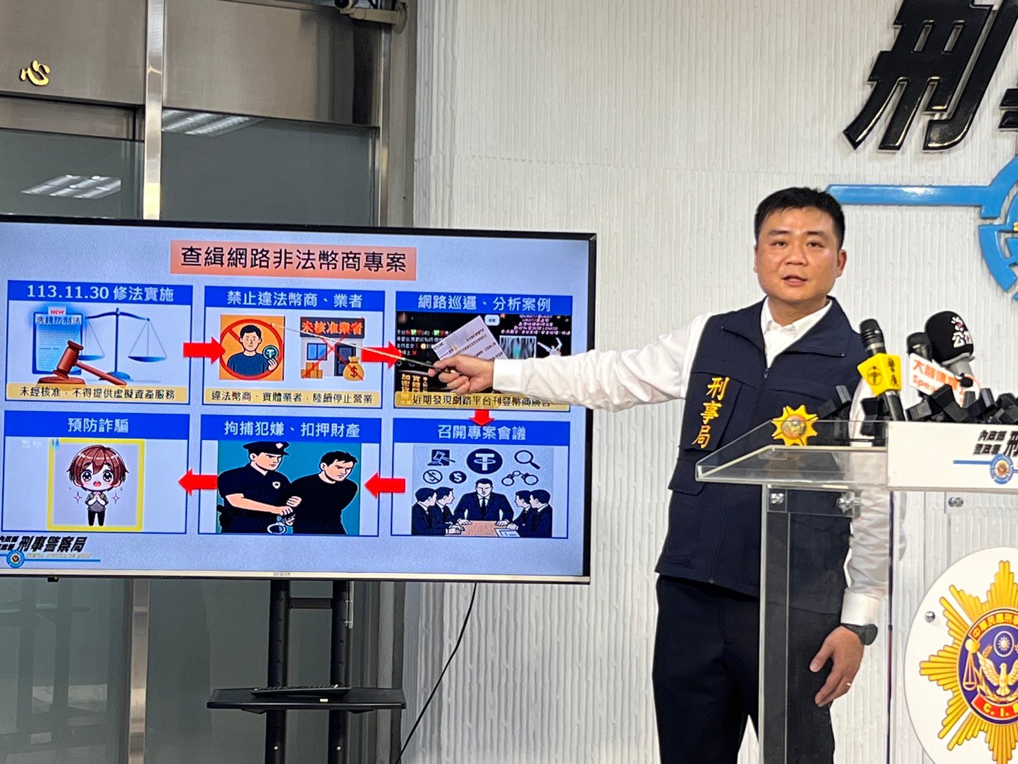 【記者 曹雅婷/臺北報導】配合新修正洗錢防制法虛擬資產服務業(VASP)管理新制上路,刑事警察局今(23)日宣布,在台北地方檢察署及新北地方檢察署聯手指揮下,針對非法幣商進行專案查緝,成功破獲多起未經登記即從事虛擬貨幣交易、並涉嫌詐欺與洗錢的不法案件,展現政府斷絕地下金流、打擊犯罪的決心。
