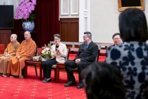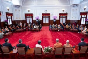 訪賓一行由內政部次長馬士元、法務部次長徐錫祥、財團法人臺灣更生保護會董事長張斗輝陪同,前來總統府拜會副總統。