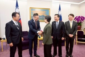 蕭美琴副總統今(23)日上午接見「日本前法務大臣鈴木馨祐眾議員乙行」時指出,近年來臺日關係穩健發展,在經貿、投資、供應鏈合作及區域地緣政治等議題持續交流,期盼透過此次互動持續深化雙方合作,共同因應區域挑戰。
