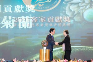 總統接著也同時表彰今年「終身貢獻獎」得主的事蹟。第一位是張永西先生,長年旅居巴西,是備受敬重的僑界領袖,除了傳揚客家文化,更發起籌資興建「客家緣樓」,做為客家人在異鄉互相交流、延續情誼的重要據點,讓臺灣客家在世界的另一端落地生根,發揚光大。
